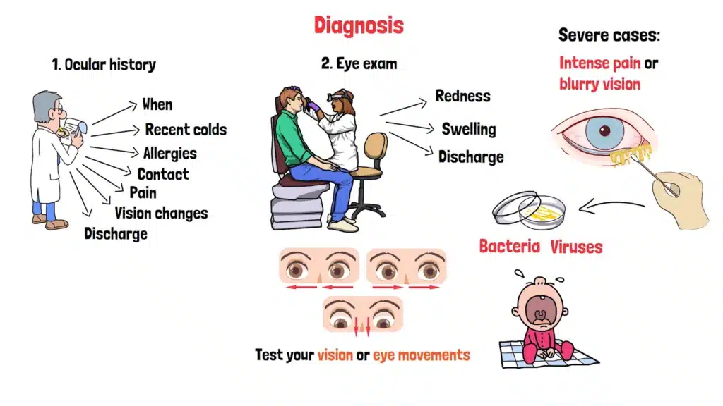 Your doctor starts with your story—when did your eyes start acting up? Any recent colds, allergies, or contact with someone with red eyes? They’ll ask about pain, vision changes, or discharge.