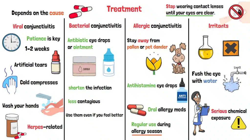 Bacterial conjunctivitis often calls for antibiotic eye drops or ointment. These can shorten the infection and make you less contagious, but you’ve got to use them for the full course, even if you feel better. Think of it like finishing a round of antibiotics for a sore throat.